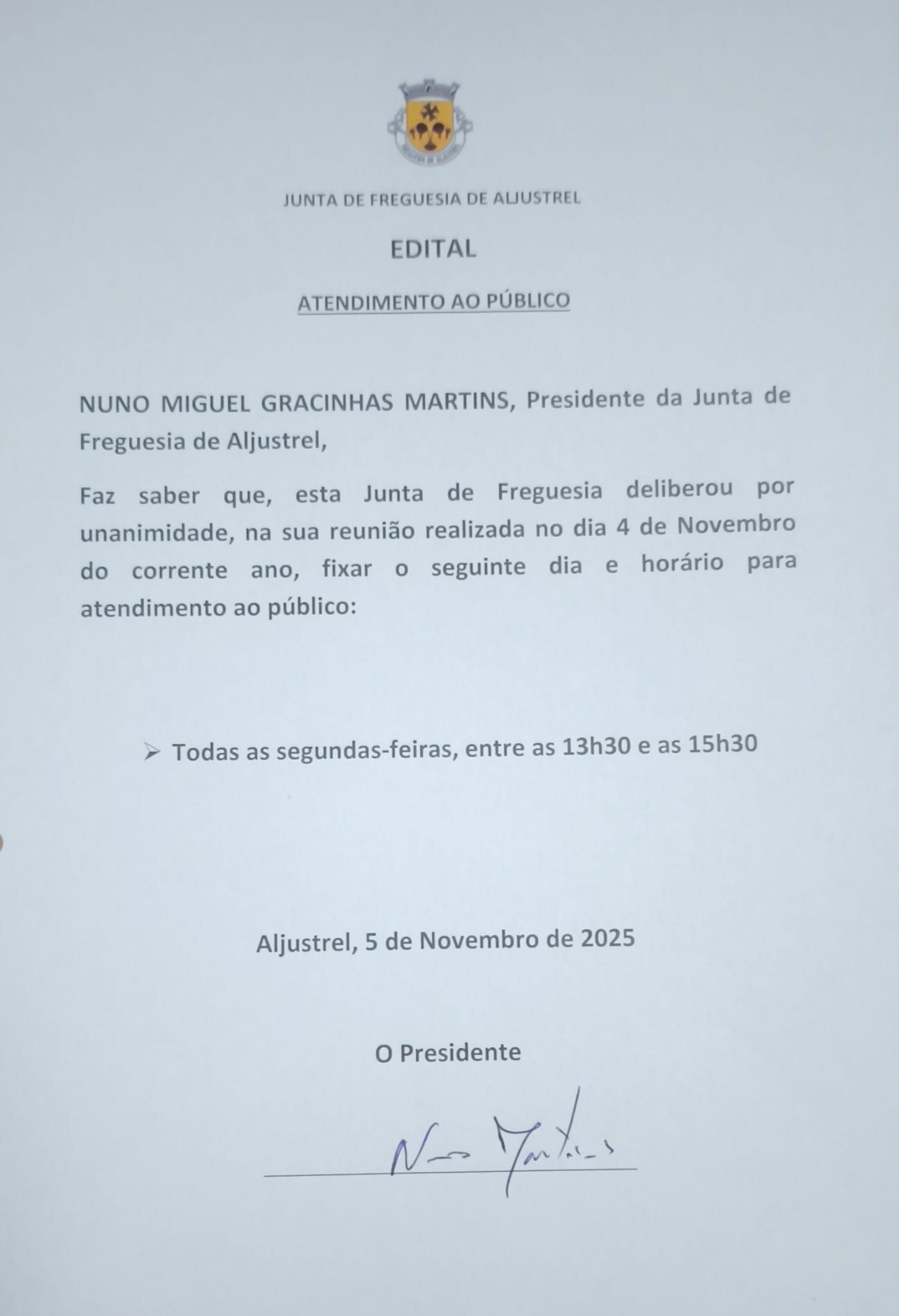 📌 Edital – Reuniões Ordinárias do Executivo da Junta de Freguesia de...