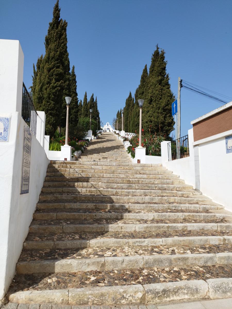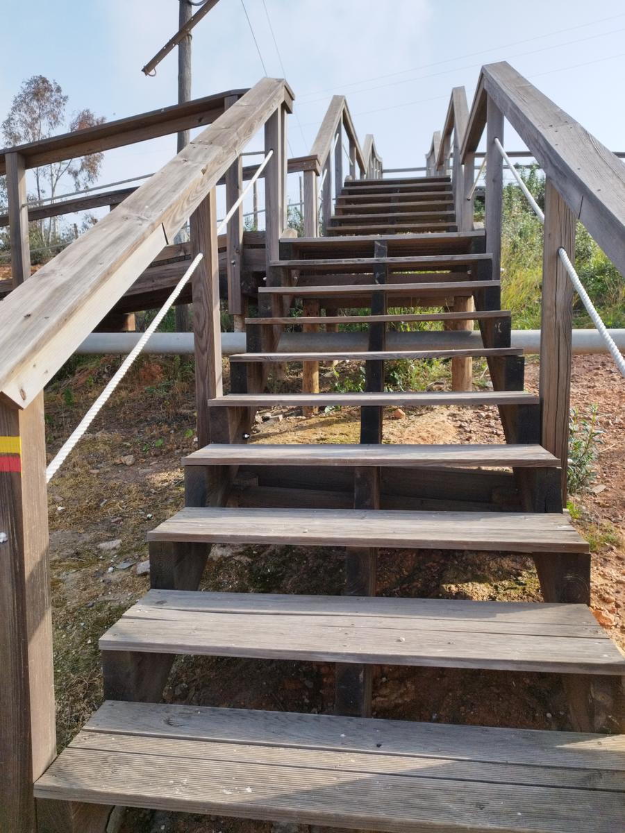 No final, virar à esquerda e subir a Rua São João de Deus onde se avista, ao cimo, a Igreja Matriz, e passar no Museu Municipal, antigo edifício da Câmara Municipal. Após a igreja, subir o majestoso escadório da Igreja da Senhora do Castelo e atingir um local de deslumbramento de paisagem. Seguir pelo passadiço lateral e descer pela vila virando à direita após a praça de touros. Seguir junto às antigas explorações mineiras e admirar o que resta de uma corta a céu aberto a partir do miradouro de interpretação da paisagem.